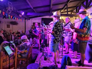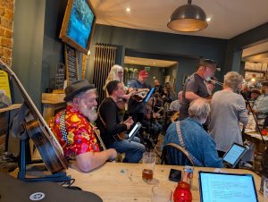 A: Chris Brown founded the group (in February 2023) and he runs the website for us and sorts out insurance. The band play whatever songs the group agrees to. We have a setlist that just keeps growing. Bob (one of the original members) looks after that for us.